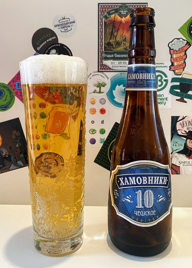 Деситка от Хамовников, которая заменила Столовое, появилась на прилавках магазинов осенью прошлого года, наконец-то доехало и до питерских ашанов и лент, ну ,и до наших обзоров разумеется. Это лёгкий лагер с крепостью 3.7%. В аромате: мягкий аромат цитрусов и лёгкий запах трав. Во вкусе: всё довольно просто без особых изысков, сначала цитрусы, а в послевкусии идёт привкус солодовой кашки. В итоге: кажется это пиво немного мягче, чем Столовое, но тем не менее тело ощущается более полным, насыщенным. Здорово, что на рынке пива появилось довольно лёгкое по крепости, но при этом не пустое по вкусу пиво. По-моему классно выпить такое пиво в обед, посреди жаркого горячего дня, покемарить, а потом сесть обратно за работу. Короче рекомендую. Оценка 8 из 10. Брал за 57 рублей в Ашане.