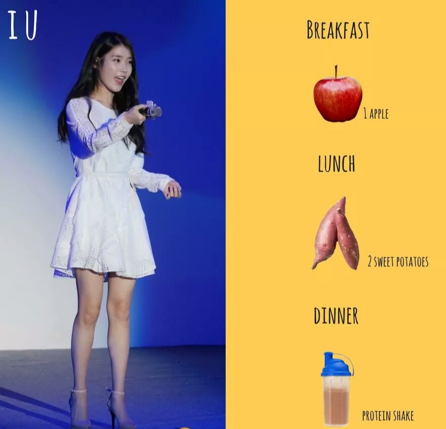 Недавно попробовали с подругой диету известной южнокорейской феи IU. Эта хрупкая принцесса отличный показатель типичного представителя идеала красоты кореяннок и многочисленных фанатов k-pop. Ее диета была опубликована в одном корейском шоу и суть сие способа сбросить пару лишних кг и загрузиться состоит в следующем: Завтрак - яблоко Обед - сладкий картофель (батат) Ужин - протеиновый коктейль Об этой диете я знала уже давно и также давно хотела ее попробовать. Но, что называется всему свое время, звезды сошлись, мы с подругой за долгое время наконецто увиделись и пошли на эту авантюру. По ощущениям ты не испытываешь дикого стресса, как на питьевых или моно диетах, с утра заряжаешься углеводно-глюкозным яблоком, днем даёшь бой картошкой и вечером шлифуешь все молочным коктейлем похожим на вкус, как из мака. Яблоки мы нарезали, картошку я сильно спецовала и запекала (очень вкусно, кстати), ну а молочный коктейль, это приятный десерт перед сном. Старались также много ходить