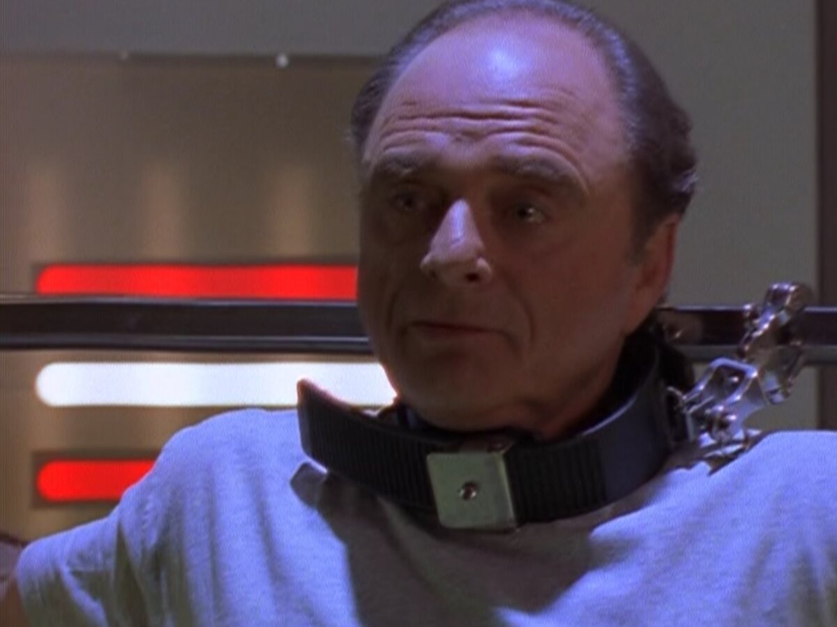 💣 Видео-послание Кесслера ближе к концу серии было снято довольно необычным способом и без применения спецэффектов. Монтажёр Дэвид Томпсон решил протестировать свою новую цифровую камеру: сначала сцену сняли в обычном формате, затем запустили на мониторе и сняли получившееся на цифровую камеру, чтобы намеренно снизить разрешение.