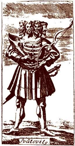 Мифология древних славян была создана давно, когда не было письменности. То, что нам известно сегодня, собиралось благодаря народному творчеству, верованиям и обрядам. В мифах отражено представление людей тех времен, о силах могучей природы и окружающем мире. 1. Световид Это божество было в великом почете у наших предков. Изображали его с четырьмя лицами, по одному на каждую сторону света. В левой руке он держал лук, а в правой рог, выкованный из металла. На бедре висел огромный в серебряных ножах меч. Рядом с ним– седло и узда его коня. Световид считался хранителем и продолжателем рода, прародителелем, давшим свет и жизнь. Он, как Даждьбог, обозначал то, что мы привыкли называть "весь белый свет". Отсюда и святки – игры в честь бога Световида. Четыре лица Световида указывают, что власть его распространяется "на все четыре стороны". Все атрибуты бога характеризуют его ответственность за те или иные дела, в которых он помогал славянам, своим потомкам. Рог означал урожай, изобилие. Счи