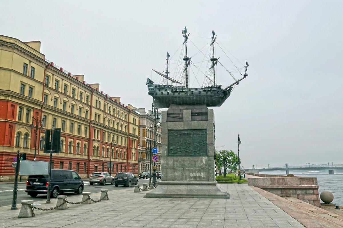 Лет пять назад на Воскресенской набережной в Петербурге торжественно и с помпой поставили памятник «Полтаве». «Полтава» стала первым линейным кораблём, созданным в Санкт-Петербургском адмиралтействе (1712 год) по проекту самого Петра I. Несмотря на то, что особых военных подвигов за этим кораблём не числится, он является одним из символов Балтийского флота. Со стороны этот замечательный памятник выглядит примерно так, как указано на фотографии выше. Даже отсюда видно, что он выполнен с большой детализацией. Так и хочется разглядеть его поближе. Так за чем же дело стало? Давайте подойдём! И что мы тут видим? Правильно, ничего мы тут не видим. Стальной ёжик — да и только. И вот я таким образом мимо ходил лет пять, да наверх посматривал. А ведь интересно, что там. Эти пушки — они полноценные? Или просто трубочки, снаружи прицепленные? А что на палубе? А вдруг там что-то интересное? Ходил-ходил, а спустя пять лет появилась возможность полетать. Честно говоря, я совершенно не пожалел об эт