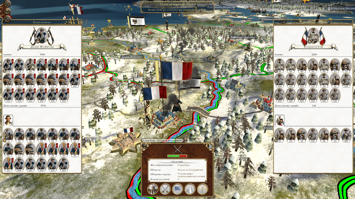 Добрый вечер уважаемые читатели Дзена, сегодня я расскажу о том как небольшая Пруссия решила повоевать) Эта статься слегка отличается от прошлой так как на середине боя игра решила умереть( Поэтому я решил добавить парочку других боев. Начал я как обычно с расстановки сил. Поставил артиллерию с двух сторон благодаря чему вышел неплохой капкан, но на нем остановимся позже а сейчас посмотрим расположение. Следуя своему плану я хотел снести стены и направить туда пушки с шрапнелью чтобы в один миг завершить сражение. А вот собственно и ловушка, я избавился от отряда противника без каких либо потерь. В данные проломы я направил пару пушек и в прикрытие пехоту если кавалерия решит их атаковать Это в итоге и произошло, но строй каре конница взять не сможет вообще никак, таким образом я избавился от большей части кавалерии. Ну и в скором времени игра вылетела. Злость переполняла меня всего, я решил пропустить этот ход и дать атаковать ИИ. Французы подвели еще один стек армии и как видно по