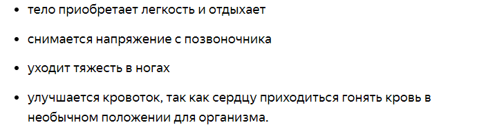 Каждый вечер, придя после работы и без сил на что либо еще, я падаю на диван и задираю ноги к потолку на 10 минут. Вопрос простой - зачем я это делаю? На самом деле это очень ценное упражнение. Так как в большинстве случаев мы целый день сидим, то такая поза полностью противоположна нашему обычному положению. Вот основные эффекты от этой позы, которые я прочувствовала на себе. Кстати, это поза очень полезна как профилактика варикоза. Дело в том, что венозный оток крови ,во время пока ваши ноги вверху, не только улучшается, но еще и исчезает припухлость ног и чувство усталости. Даже если вы уже страдаете варикозом, тогда это упражнение может помочь с облегчением симптомов болезни. Регулярное выполнение этого упражнения поможет вашему здоровью намного больше, чем вы можете себе представить. Например ,улучшиться память , замедляется старение и облегчается варикоз. Напишите в комментарии, какие упражнения для здоровья делаете вы? Нам будет очень интересно узнать) Присоединяйтесь к нам
