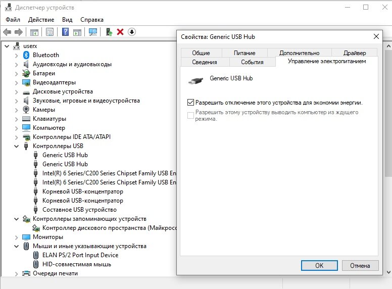 Чтобы исправить ситуацию, есть два способа: 2. Правой кнопкой мыши по меню Пуск — выбираем Управление электропитанием — скроллим вниз до пункта и переходим по нему Дополнительные параметры питания — Изменение параметров действующей схемы — Изменить дополнительные параметры - во вкладке Параметры USB в Параметрах временного отключения выставляем Запрещено.