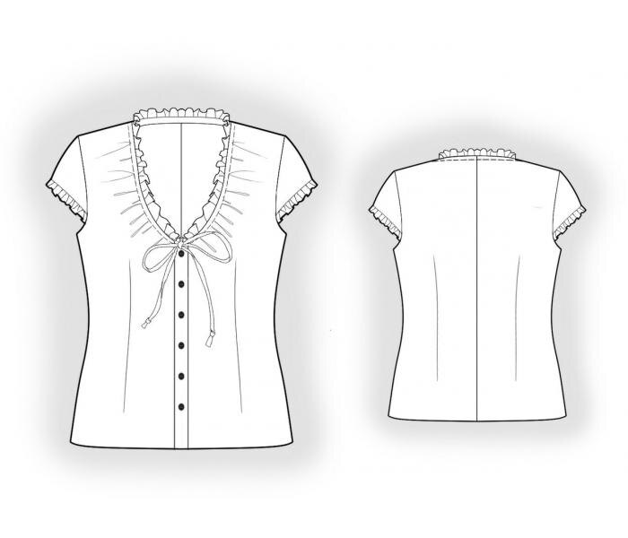 ПРИПУСКИ НА ШВЫ: По низу изделия 1.5 см, по срезу горловины полочки и спинки, по длинным срезам рюши 0.7 см. Остальные припуски 1 см.
