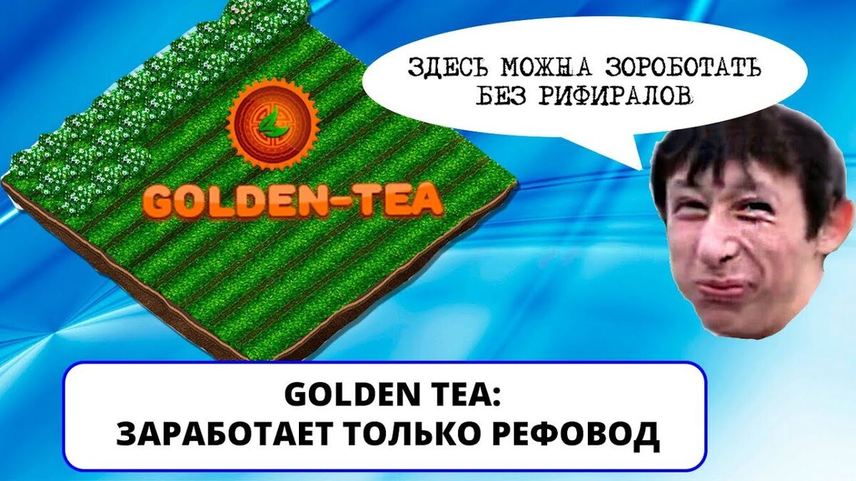 Сегодня мне попался сайт Golden tea, который без вложений предлагает нам заработать! Но все ли так круто? Итак нас опять встречает приветственный бонус, с помощью которого мы можем купить куст, который будет приносить нам 36 реальных рублей в месяц, куст стоит 100 реальных рублей, чтобы вывести деньги нам нужно вложиться, мы вкладываем свои 100 рублей, итого имеем 2 куста которые вместе в месяц приносят нам 72 рубля. Круто! То-есть через 2 месяца мы полностью окупим наши вложения, но это не так! И вот через два месяца мы заходим и узнаем что деньги поделились на две части, одна - только для покупок, вторая - для вывода, мы ждем и пытаемся вывести "минималку", но оказывается, что нам нужно пригасить людей, чтобы они стали рефералами, то-есть вы подсаживаете людей на игру, ни теряют деньги, а вы наконец можете вывести свои жалкие 100 рублей (но это не точно), поздравляю вы "рефовод". Схема та же, что и на