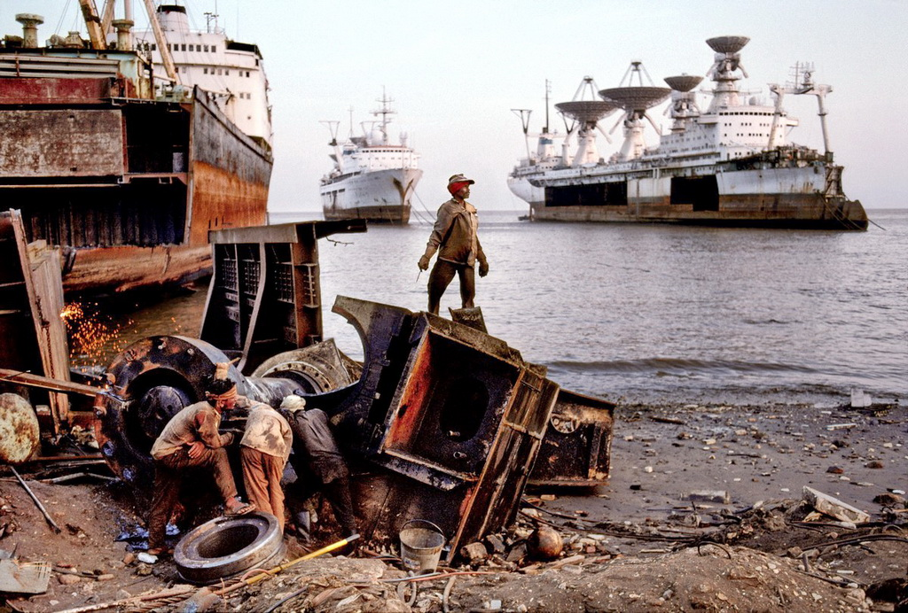 Жизнь современного корабля не велика — при сроке службы более 30 лет его эксплуатация обычно становится нерентабельной из-за коррозии, усталости металла и проблем с запасными частями. В результате если кораблю не нашлось какого-то альтернативного применения типа плавучего музея, его списывают и утилизируют, для чего и выбрасываются они на берег, как киты. Утилизация судов это очень опасное, трудоёмкое и грязное занятие, поэтому этим занимаются в основном предприятия располагающиеся в бедных странах — там и рабочая сила дешевая и за охраной экологии следят меньше. Места где корабли заканчивают свою непродолжительную жизнь очень напоминают декорации постапокалиптического мира, но к сожалению это не очередной Безумный Макс — все реально. Для многих людей это просто жизнь, но это уже совсем другая история.