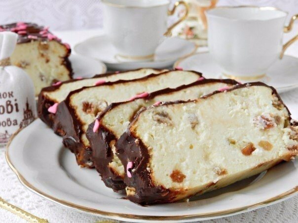 Сохрани и приготовь 📌 Ингредиенты: Творог — 500 г Яйца — 3 шт. Сахар — 150 г Ванильный сахар — 1 пакетик Картофельный крахмал — 1 ст. л. Лимон — 1 шт. Изюм — 100 г Для шоколадной глазури: Сливочное масло — 2 ст. л. Сметана — 3 ст. л. Сахарная пудра — 2 ст. л. Какао — 2 ст. л. Кулинарная посыпка — для украшения. Дополнительно: Форма для выпечки 21х11 см Приготовление: 1. Творог растереть с яйцами, сахаром, ванильным сахаром. Должна получиться гладкая пышная творожная масса. Добавить крахмал и снова хорошо перемешать. 2. С лимона снять цедру. Изюм распарить в кипятке в течение 5 минут, затем обсушить. В творожную массу добавить изюм и цедру лимона, перемешать. 3. Форму для выпечки, если она не силиконовая, застелить промасленной бумагой. Выложить равномерно творожную массу. 4. Поставить в разогретую до 190ºC духовку на 45 минут. Затем огонь выключить и оставить сырник в духовке на 10 минут. Вынуть форму с сырником из духовки и окончательно остудить. При остывании сырник немного