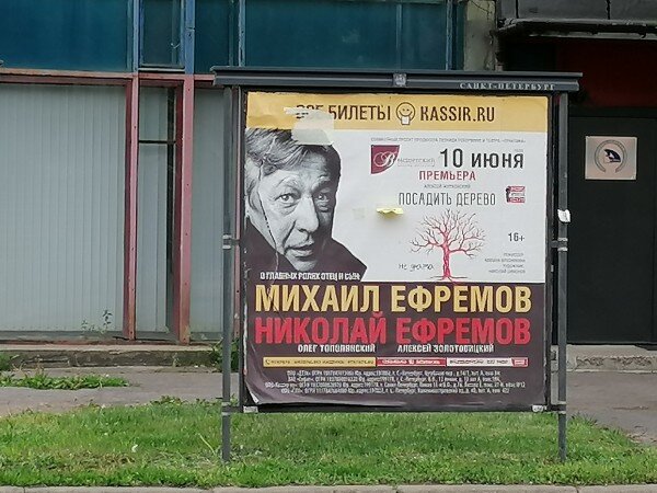 Только ленивый за последние три дня не написал ничего про человека с афиши. А афиша, видимо, висит с марта, когда еще планировались спектакли и пр. Хорошая афиша. Наверное, много людей планировало пойти на это представление и никто не думал в марте 2020 года, что 10 июня будет стоят вопрос о посадке вовсе не дерева.