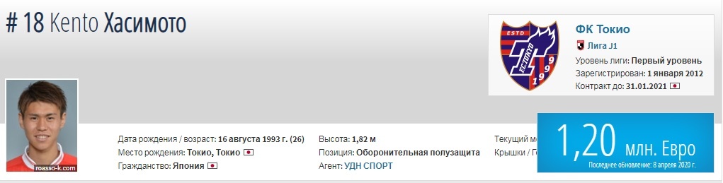 Футбольный клуб «Ростов» хочет видеть в своем составе опорного полузащитника сборной Японии Кенто Хасимото. Японские СМИ пишут, что россияне уже сделали конкретное предложение 26-летнему опорнику, выступающему за ФК «Токио». Текущее соглашение Хасимото заканчивается в январе 2021 году. Сам игрок хочет поиграть за границей. За сборную Японии Хасимото дебютировал 26 марта 2019 года. С того момента полузащитник принял участие в 7 матчах, результативными действиями не отметился. За «Токио» в минувшем сезоне Хасимото принял участие в 34 матчах чемпионата Японии, в которых стал автором трёх забитых мячей. Хасимото, безоговорочно является игроком основного состава японской команды. Еще важно отметить, что хавбек за 34 игры получил только одну желтую карточку. Игрок ранее входил в сферу интересов мадридского "Реала". Если это трансфер состоится, то команда Валерия Карпина получит игрока способного "выгрызать" мяч в центре поля, но и быстро доставлять его в атаку. Со скоростными данными у