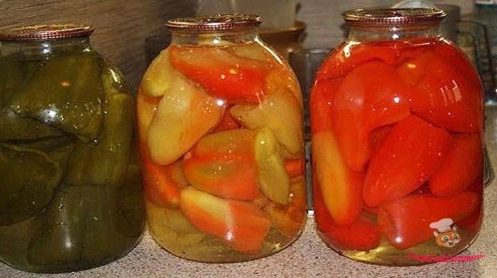 - Получившимся маринадом залейте перец в банках и сразу закатайте крышками.