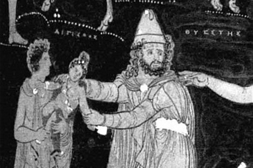 Атрей и Фиест Однажды оракул сообщил жителям Микен, что их царем должен быть потомок Пелопа. Таковых было двое — братья Атрей и Фиест. Последний с помощью жены своего брата Аэропы раздобыл золотого ягненка и воцарился. Однако Атрей затаил обиду и в один день изгнал Фиеста, который, помимо всего прочего, соблазнил Аэропу. За это царь Атрей убил сыновей своего брата и приготовил из них жаркое. На ужин он позвал Фиеста, которому подали приготовленное блюдо из его же сыновей. Для Атрея это кончилось тем, что брат проклял весь его род. Сизиф Нам известны несколько древнегреческих мифов, которые объясняют причины сурового наказания основателя и царя Коринфа Сизифа, который был обречен вечно поднимать огромный камень на гору. Ему вменяют, в частности, разглашение тайн богов, грабительство, насилие, похищение и заточение бога смерти Танатоса. По одной из версий, Сизиф изнасиловал Тиро, которая родила после этого двух детей. Они, согласно, предсказанию, должны были отомстить врагу их отца Сал