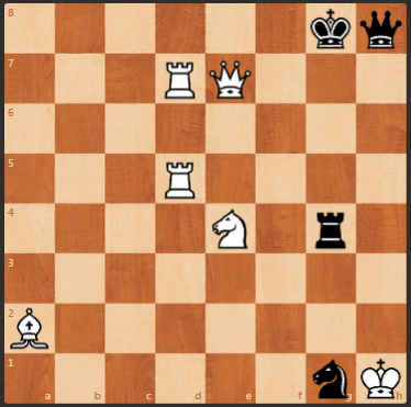 Разминочная шахматная задача. Подавляющее преимущество белых на шахматной доске. Белые начинают и матуют в 1 ход. Простой мат который могут найти только 99% шахматистов тут>>>