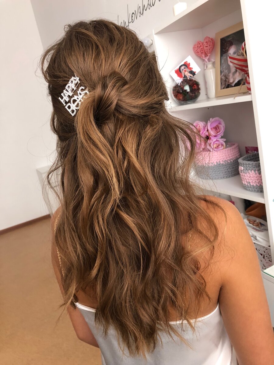 Я рада видеть вас, друзья. Если вам интересна моя тема- то, пожалуйста, подпишитесь на мой канал. Яндекс даёт возможность выкладывать видео только от 500 подписчиков. А у меня его очень много и я хочу им с вами делиться! ⠀ Итак, сегодня я поделюсь с вами очень популярной идеей причёски на каждый день. ⠀ Учимся анализировать фото причёсок. Что мы видим на снимке? ⠀ • Небрежная накрутка • Натуральный объём • Подколотые пряди «полу узлом» по центру • Украшения ⠀ С чего начинается каждая прическа на завитые волосы? Подготовка. ⠀ Накрутка Температура инструмента не должна превышать 200°. Обычно я использую 170°-190°. ⠀ Делим волосы на ряды. Каждый ряд на примерно одинаковые по длине пряди. Каждую прядь накручиваем ассиметрично (вправо/влево). Как можно ближе к корню заводим утюжок и прокручиваем его на 360°. Только после этого плавно спускаемся по пряди под углом примерно 45°. ⠀ Накручиваем таким образом все волосы. Разборка накрутки У меня был сахар для волос от Wella. Также м