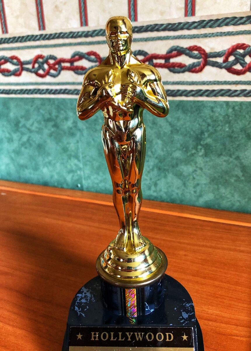 Эту сувенирную статуэтку Оскара я купил на Голливудском бульваре в Лос-Анжелесе. Самый старый работающий кинотеатр Лос-Анжелеса - кинотеатр Граумана на Голливудском бульваре. Здание кинотеатра в китайском стиле было построено в 1927 году импресарио Сидом Грауманом, и до сих пор в нем проходят громкие премьеры самых известных голливудских фильмов. Хотя основная церемония вручения Оскара уже давно переместилась в кинотеатр Dolby (Кодак). Главная достопримечательность театра – отпечатки рук и ног знаменитостей, которую начали создавать у входа в театр сразу после окончания строительства. Считается, что традиция возникла совершенно случайно, когда звезда немого кино Норма Толмадж случайно шагнула на не застывший цемент у достраивающегося кинотеатра. Предприимчивый Грауман превратил эту оплошность в традицию - сегодня перед театром Граумана насчитывается около 200 отпечатков рук и ног знаменитостей. А совсем рядом находится голливудская «Аллея славы» (Hollywood Walk of Fame) — это обыч