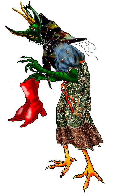 Кикимора (шишимора) это - лесной дух, упоминание о котором берет начало из славянской мифологии. Зачастую кикимора бывает женского пола, очень редко мужского. Происходит от людей, а точнее из некрещеных детей, умерших не свой смертью, насильственой смертью или самоубийством. Внешность Кикиморы: Голова похожа на голову птицы, но при это у нее человеческие глаза, маленькое сгорбленное тельце, покрытое перьями (или шерстью у мужских кикимор). У женских особей ноги птичьи, у мужских - медвежьи . Руки длинные, даже длиннее, чем у человека, поэтому в основном она передвигается только на руках. Бытует мнение что кикимору могут призвать в дом обиженные строители, подложив приманку - куклу набитую тиной и птичьими перьями. Так же кикимора может общаться с людьми на их языке и насылать морок(галлюцинации), заговаривая человека, дает подарки в виде лесной дичи, ягод, грибов, но требует непомерной платы, сводя человека с ума и заманивая в смертельные ловушки( трясина, или логово диких животн