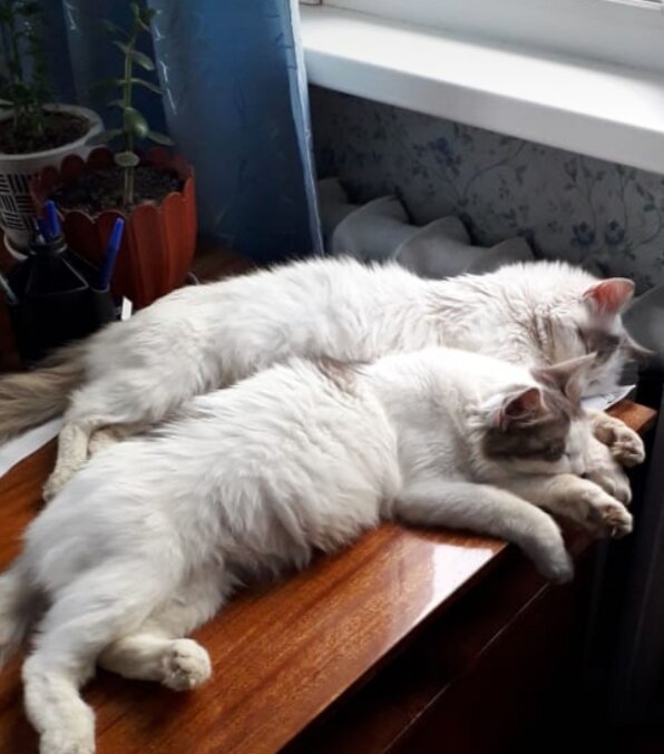 Сегодня расскажу историю о диких котах и их сюрпризах. Жила-была у нас полудикая кошка Маруська. И почему-то у нее не получались котята. Либо мёртвые рождались, либо умирали быстро. Скорее всего, это происходило потому, что Маруська была слабенькой, в детстве много болела. В детстве мама Маруськи, испугавшись звуков стиральной машинки, унесла маленькую кошечку под яблоню, вроде как спрятала. Навещала там ее редко. Маруську воспитывала клушка и водила ее вместе с цыплят цыплятами. Все дружно греблись в земле и предали червей. Мы Маруське носили еду, но в дом она идти боялась, долго жила на холоде. Но все же постепенно перешла поближе к пище и теплу. В руки не сначала не давалась, потом иногда стала подходить. И вот случилось чудо-у Маруськи родились живые котята. Прошло несколько дней, и она под шумок унесла их в открытый подпол и спрятала в каком-то закоулке. Через два месяца вывела их на свет божий и спрятала под кроватью. Котята были, понятное дело, дикие, из-под кровати выходили ре