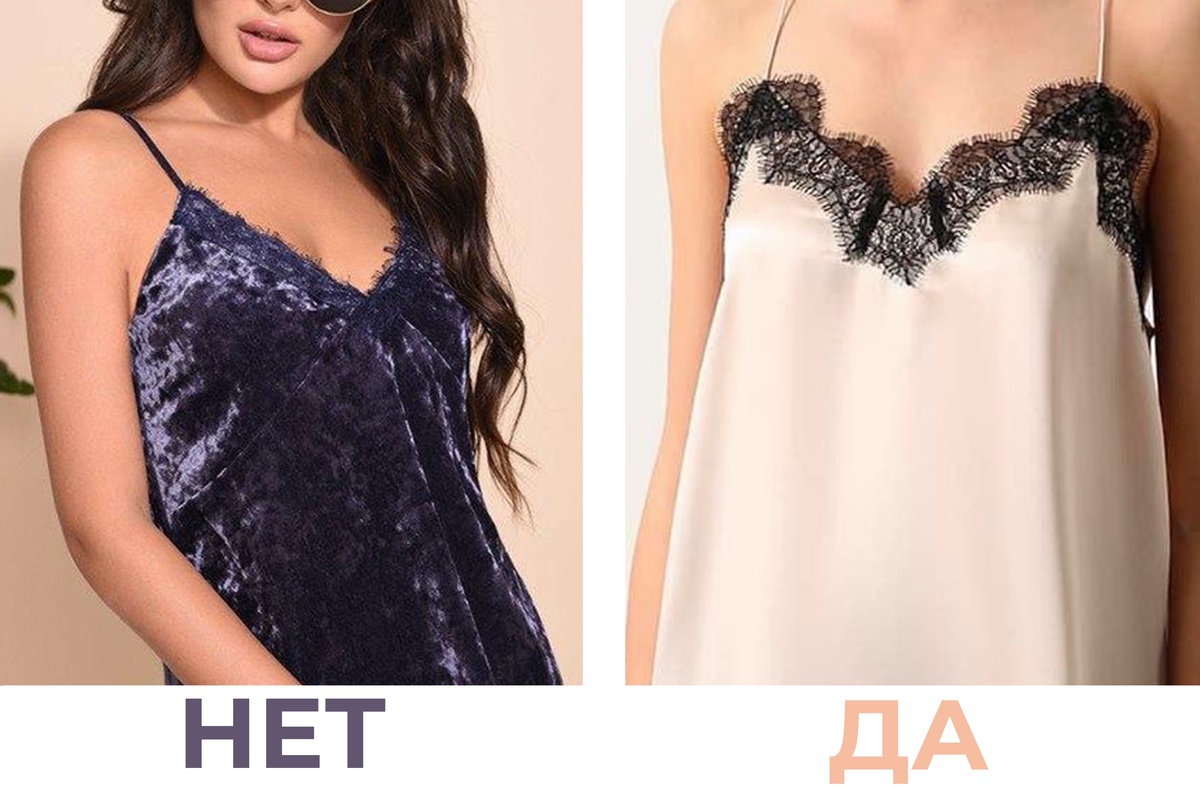 Согласитесь, это не простой элемент гардероба, который опасно надеть не правильно и не с тем, с чем должно быть. И из супер стильного и сексуального элемента мы получим вульгарную дешевую майку, которую даже в спальне надеть стыдно Правило 1. Материал Только шелк!Полуматовый или матовый. Девочки, низачто не покупайте трикотажный топ или из дешевого атласа или что еще хуже бархата. Они относятся именно к домашней одежде и не более того. Правило 2. Крой Простой крой. Никаких суперажурных кружев под грудью, вокруг или еще где нибудь.Вы рискуете выглядеть дешево. Простые прямые бретельки, крой и топ уже выглядит дорого, кружево только сверху! А если топ вообще без кружева, то это максимально безопасно и беспроигрышно. Правило 3. Цвет Выбирайте топ нежных оттенков: все нюдовые оттенки , молоко, хаки, графит или пыльная роза. Лучше, если кружево будет в цвет топа. Правило 4. Как и с чем его носить Топ лучше носить с чет-то сверху: будь то джинсовка, кардиган или джемпер с глубоким вырез