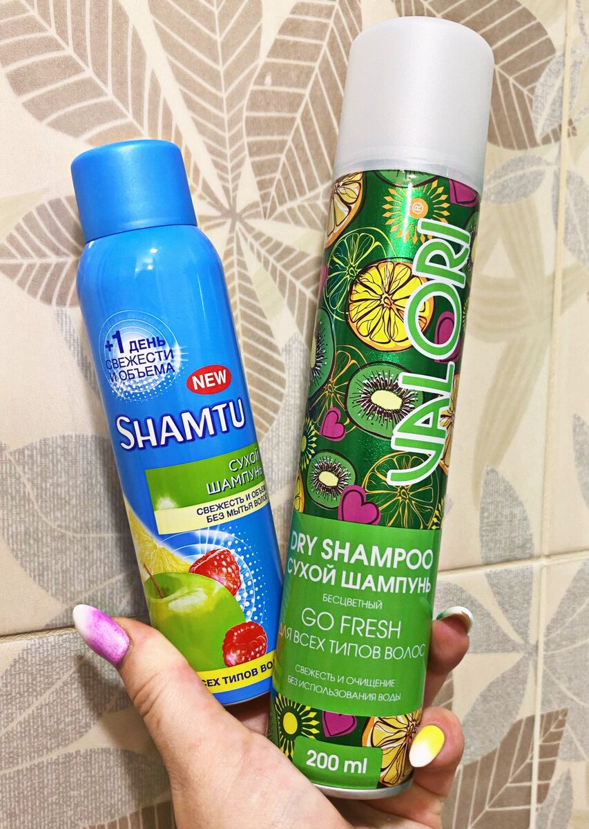 Приветствую вас, красотки. Сегодня расскажу про сухие шампуни для волос. Первое что хочу отметить, не прибегайте к постоянному использованию сухого шампуня, так как он не моет волосы, а придает им более привлекательный вид если к примеру вам отключили воду или вы просто не успели помыть голову перед выходом на работу. Из сухих шампуней которые у меня были, приведу в пример только два вида. И в конце расскажу маленький лайфхак. Первый и мой любимый сухой шампунь от Shamtu Шикарный аромат свежих ягод в течении всего дня присутствует на волосах. Подходит для всех типов волос, придает небольшой объем. После применения визуально ваши волосы будут чистые и можно даже придумать какую либо прическу. Распылять необходимо на расстоянии 20 см., оставьте на пару минут и помассируйте. Стоимость 185 руб. Второй сухой шампунь от Valori Я уже неоднократно даю это фирме шанс и что либо покупаю, но к сожалению эффект от их средств мне не очень то нравится. Этот сухой шампунь придает не много объема в