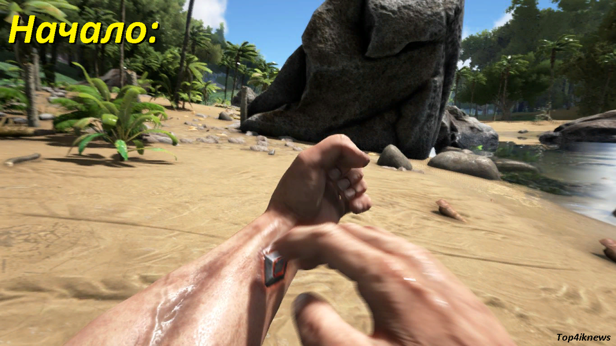 Ark Survival Evolved - это игра выживалка, где вы начинаете простым человеком, со своими потребностями в еде, воде и даже - туалете! В вашу руку встроен кристал, который является вашим инвентарем и статистикой. Игра прикольная, в ней куча прокачек как характеристик, так и навыков.