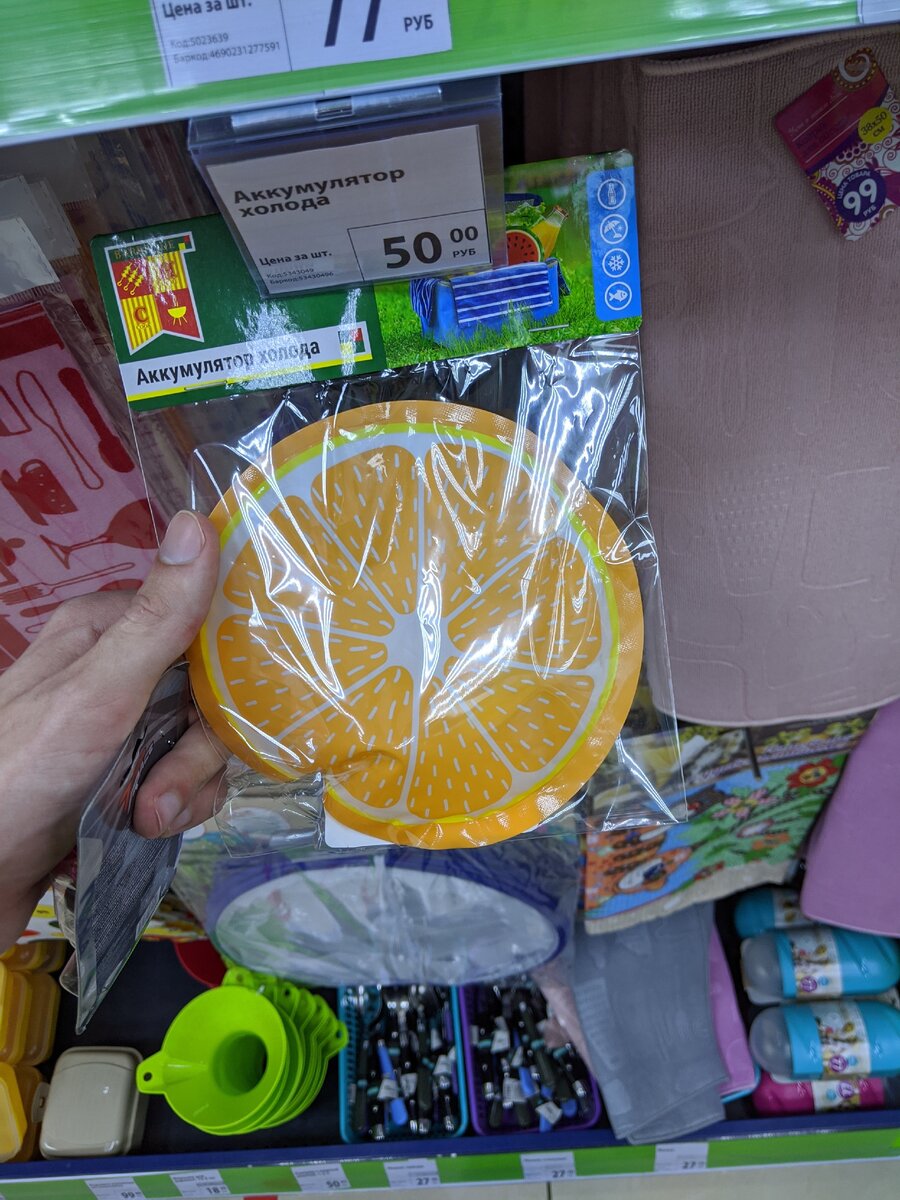 Доброе время суток! Сегодня расскажу о новинках из Фикс Прайс, а так же сравню их с аналогами с сайта АлиЭкспресс. Приятного просмотра! АККУМУЛЯТОР ХОЛОДА Первый товар на сегодня, как мне кажется, будет максимально полезен летом, особенно в такую жару, которая сейчас наступила. Это аккумулятор холода. Что это такое? Это небольшая емкость, в моем случае в виде дольки апельсина, в которой находится специальный гель удерживающий в себе холод на протяжении долгого времени.