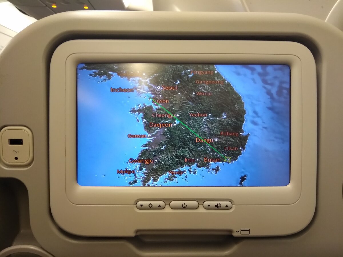 И вот я уже в самолете Корейских Авиалиний. В Корею я летел на стандартном S7, этот же самолет выгодно отличался от прежнего. Во первых он был намного вместительнее и в то же время расстояние между сидениями было больше.