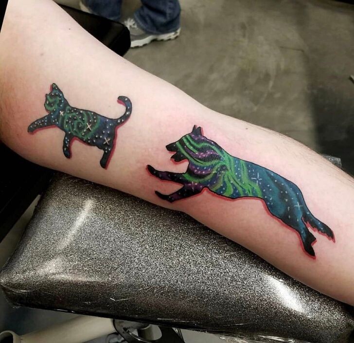 Тату — очень распространенный в современном мире способ самовыражения, который, к сожалению, в большинстве случаев не блещет оригинальностью. Мы перекопали весь интернет и, отфильтровав однотипные иероглифы, цветочки, сердечки и звездочки, нашли для вас самые необычные тату. Вполне возможно, что после просмотра этой статьи у вас не появится желания тут же побежать в тату-салон, но прилив вдохновения мы вам гарантируем. 1. Межгалактическая погоня. 2. Весь видимый спектр света. 3. Тату настоящего киномана: символ из фильма «Прибытие» 4. Патронус! 5. Невозможно не улыбнуться, глядя на это тату.