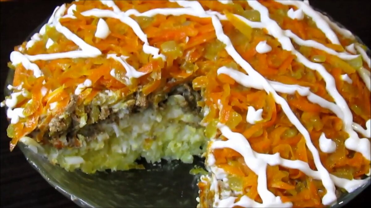 Первый слой - это картофель, потертый на крупной терке, его необходимо подсолить и поперчить, сверху майонез. Второй слой - это яйца, также потертые на крупной терке как картофель, по желанию подсолить, сверху смазать майонезом. Третий слой - печень + майонез. Четвертый слой - обжаренные лук с морковью, этот слой подсолить по вкусу и поперчить, и украсить сверху майонезной сеточкой. Смотрите фото в галерее👇👇👇