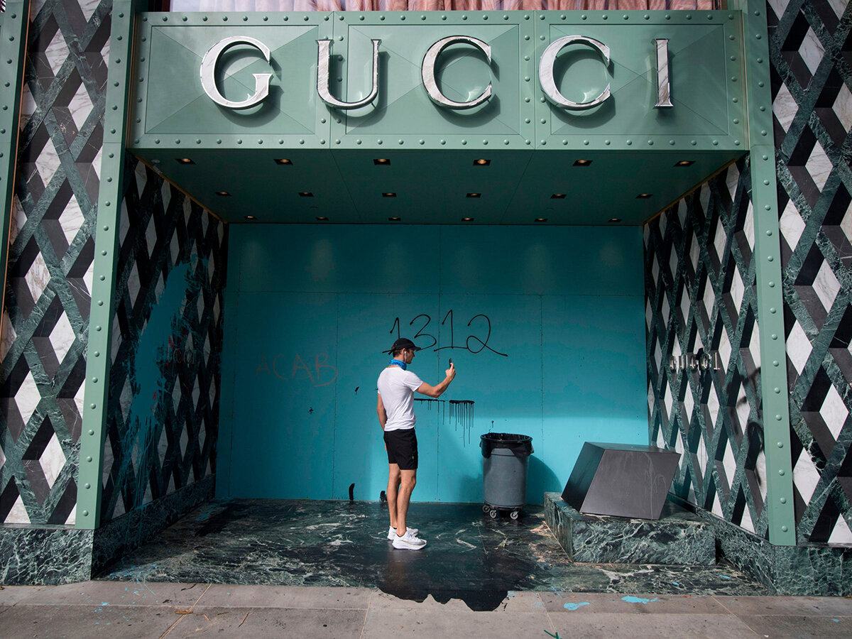 После смерти Джорджа Флойда по Соединенным Штатам прокатилась волна протестов. Среди магазинов, которые громили участники акций, оказались не только маленькие лавки местных торговцев, но и бутики международных брендов: Chanel, Gucci, Louis Vuitton. Митинги проходили не только в бедных районах, но и в респектабельных Сохо в Нью-Йорке или Родео-Драйв в Беверли-Хиллз. Как сообщают местные СМИ, помимо известных лозунгов Black Lives Matter и I Can't Breathe на улицах были замечены плакаты с надписями Eat the Rich, что можно перевести как «Съешь богатых». Витрины роскошных бутиков разбивали как символ неравенства.