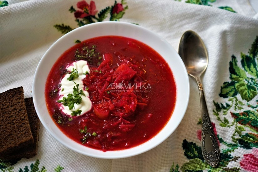 Украинский борщ с затиркой - борщ, в который добавляется сало, тщательно перетертое с зеленью, чесноком и картофелем. Это добавляет первому блюду ароматности, густоты и наваристости. По крайней мере, большинство хозяек готовят его именно так. Однако, есть и другой вариант - постный, тоже сытный и вкусный. В качестве загустителя используется банальная... мука. Как приготовить ароматный украинский борщ с затиркой? Ингредиенты: 1 луковица; 1 морковь; 2 крупные свеклы; 1/2 небольшого кочана капусты; 5-7 картофелин; 0,5 л томатного соуса; 1 болгарский перец; 2 ст. л. муки; 1 ст. л. уксуса; 1 ст. л. сахара; 2 л бульона или воды; 3 ст. л. растительного масла; соль, перец, сметана, зелень по вкусу. Инструкция Подробный пошаговый рецепт с фотографиями можно посмотреть на сайте в заметке "Ароматный украинский борщ с затиркой". Другие интересные рецепты первых блюд можно найти в разделе "Супы и бульоны". Подписывайтесь на наш канал, чтобы читать новые заметки. Если вам понравился этот рецепт