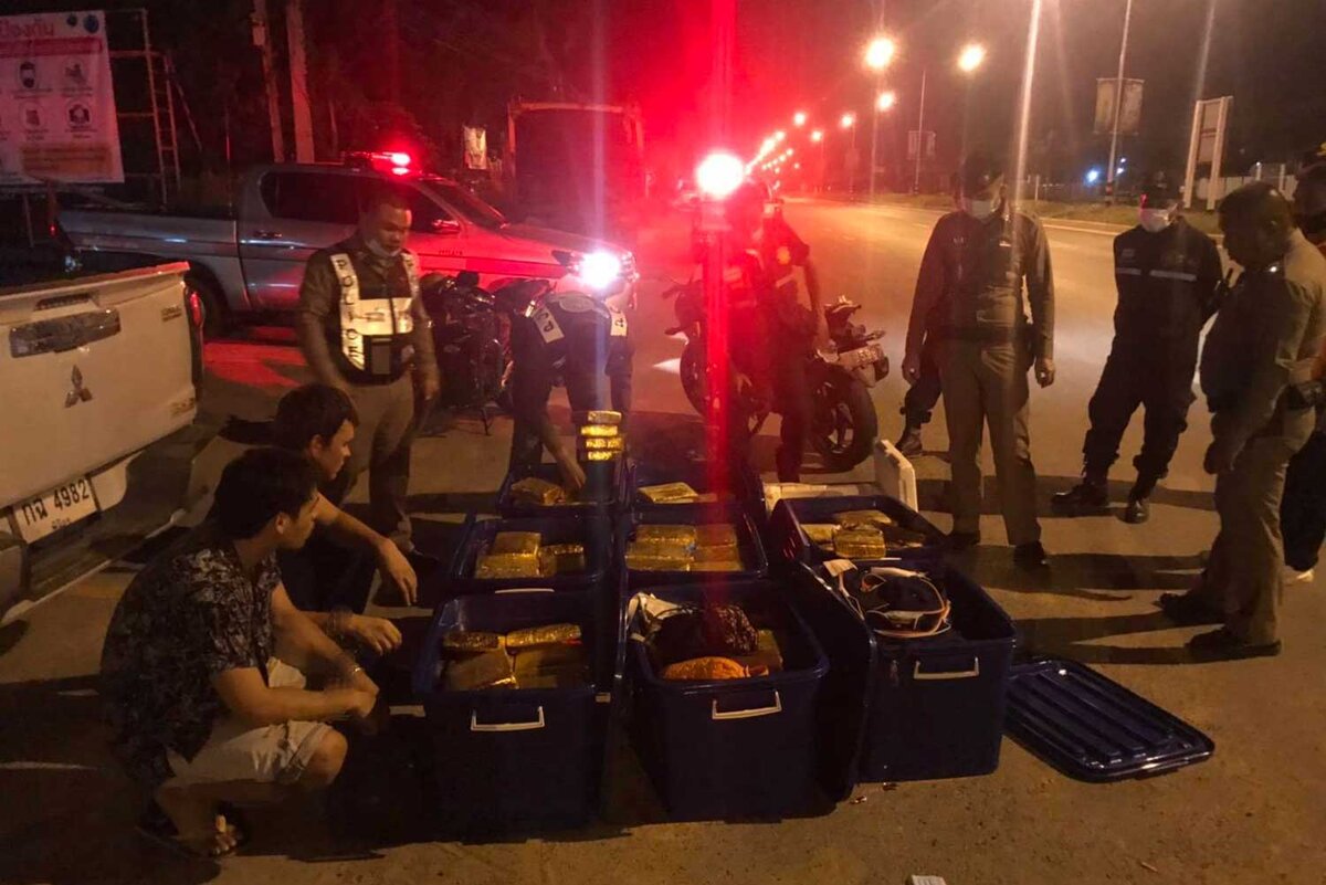 Гражданин Российской Федерации и два гражданина Таиланда были обвинены в контрабанде наркотиков после того, как 296 упаковок высушенной марихуаны были изъяты из их пикапа в провинции Маха Саракхам во время комендантского часа. В четверг начальник бюро иммиграции генерал-лейтенант Сомпонг Чингдуанг объявил об аресте трех подозреваемых в наркотиках во время брифинга в СМИ. Кирилл, 22 года, гражданин России; и два тайских гражданина Критсда, 27 лет; и 41-летний Сурачарт был обвинен в сговоре с контрабандой наркотиков в категории 5 и нарушении чрезвычайного указа и ночного комендантского часа, сказал генерал-лейтенант Сомпонг. Их фамилии были скрыты. Иммиграционная полиция сообщила, что двое из них были пойманы 9 мая с наркотиками в пикапе. Г-н Сухарт сбежал, но 22 мая сдался полиции. Генерал-лейтенант Сомпонг сказал, что иммиграционная полиция получила информацию о том, что российский подозреваемый часто ездил в пограничные провинции вдоль реки Меконг. За последние три года мужч