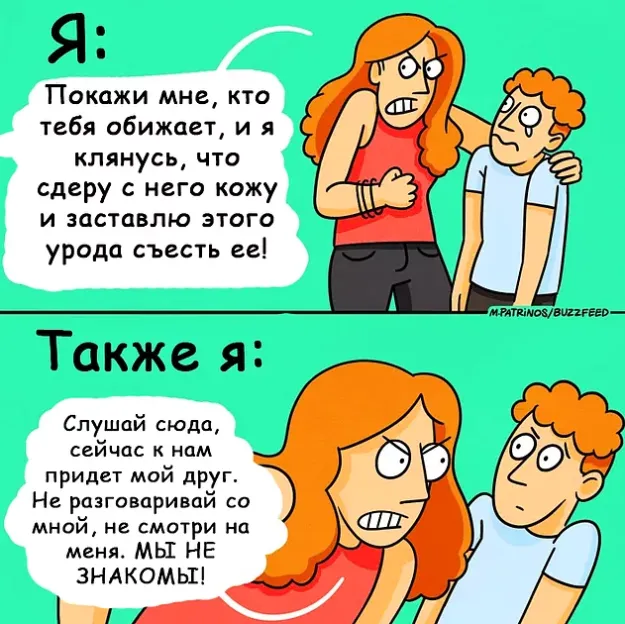 Приветствую смотрящих! С вами канал Cherchill! Люди, у которых есть братья или сестры, как правило имеют в большинстве случаев более яркие воспоминания из детства, чем те, кто был единственным ребенком в семье. Они точно оценят следующие несколько комиксов! А перед началом статьи не забудь подписаться на канал и поставить лайк! Подписался? Тогда мы начинаем! Сегодня хотелось бы поговорить об отношениях родственников, а если быть точнее, то об отношениях братьев и сестёр. Чаще всего отношения между сестрой и братом не самые сказочные. Их общение постоянно балансирует между "Ты у меня самый лучший" и "Я тебя ненавижу". Но все эти оскорбления и злость - просто детский лепет и пустые слова, на деле же, если случится какая-нибудь критическая ситуация, то брат или же сестра всегда будут первыми, кто тебе поможет и поддержит тебя в трудную минуту! Далее специально для вас я нашел несколько комиксов об взаимоотношениях братьев и сестёр. Эти комиксы показывают разные моменты из личной жизни,