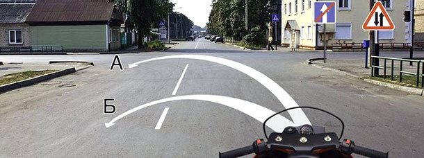 Рассмотрим ситуацию 1)Можно 2)Можно только по траектории А 3)Можно только по траектории Б 4)Нельзя Пояснение: Дорожные знаки «Конец дороги с односторонним движением» и «Двустороннее движение» информируют о том, что Вы находитесь на дороге, на которой по всей ширине движение осуществляется в одном направлении и заканчивается это одностороннее движение на перекрестке. Поэтому разворот для движения навстречу потоку ТС по любой траектории запрещен. Правильный ответ: 4 Нельзя