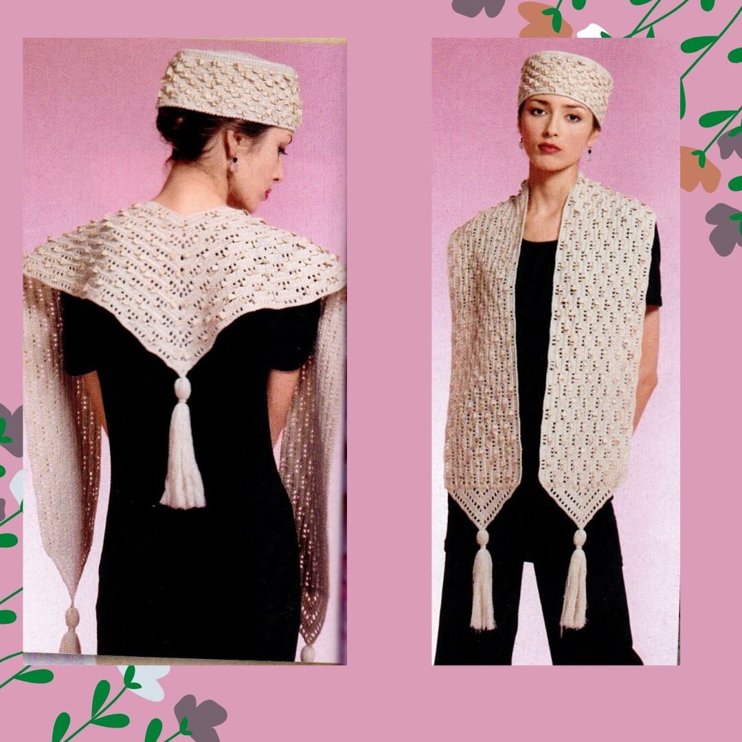 "Кубанки" снова в моде. Сегодня делюсь великолепным комплектом - шапочка и шарфик. Обе модели выполняем крючком (№ 2). Вам потребуется пряжа (600 г), замшевая лента шириной 0,7-1 см. "Кубанку" начинаем вязать с донышка СБН по схеме диаметром 20 см Далее переходим на основной узор: 1 ряд - * 3 СБН, проложите замшевую ленту, оставив кончик примерно на 1 см, и обвяжите ее пятью СБН, отрежьте ленту, оставив также 1 см* 2 ряд - СБН 3 ряд - как 1, только ленту вставляем в шахматном порядке. Таким образом вяжем ровную часть шапочки. Края обвязываем "рачьим шагом". Шапочку увлажняем и даем высохнуть на соотвествующей форме. Шарф вяжем по схеме: Не забывайте ввязывать замшевую ленту как при вязании шапочки. Раппорт рисунка в 1 ряду повторяем 15 раз с каждой стороны угла. Провязав половину рядов, начните вывязывать угловые концы шарфа, присоединяя их к уже связанным рядам. Края шарфа оформляем "рачьим шагом" и привязываем кисти .