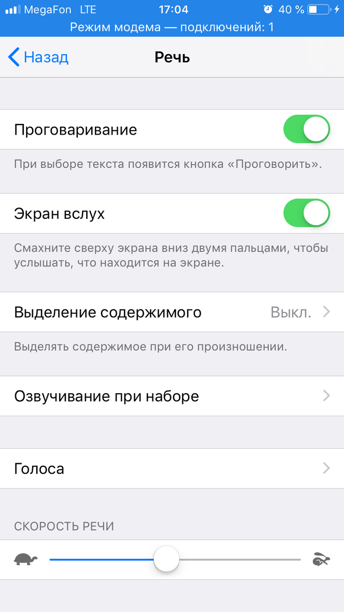 Очень много пользователей айфона не знают об очень полезной, простой функции, которая сможет облегчить вам жизнь. Наверняка у вас была ситуация когда, вам нужно было прочитать какой-либо текст, но к сожалению возможности прочитать в живую не было возможности. Но разработчики айфона продумали и это. Поэтому в айфоне есть функция проговаривание текста. Чтобы включить функцию проговаривание текста нужно: Зачем же это нужно? На мой взгляд это очень полезная функция, так как позволяет переводить из текста в аудио. Приведу пример: Вы убираетесь в квартире или занимаетесь своими делами и вам нужно попутно усвоить некую информацию, например вы читаете книгу из Safari и вам в данный момент не удобно читать текст, тут-то как раз и придёт проговаривание вслух. Как активировать эту функцию? Если вам нужно читать полностью текст, то вы должны: Если вам нужно проговорить какое-либо слово или выделенный текст, то вы должны: Надеюсь вам понравилась эта статья и вам она была полезна. А если из это