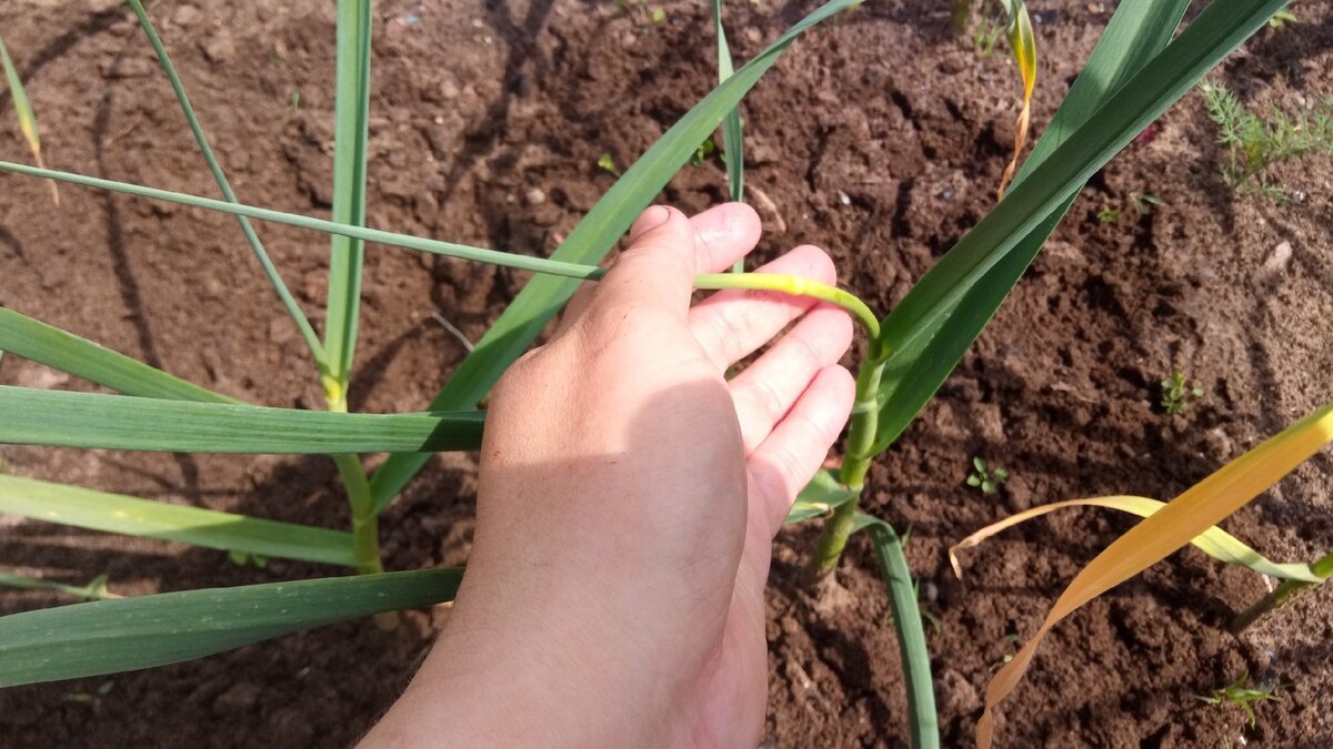 Чтобы чеснок порадовал большим урожаем, его нужно обязательно подкармливать. Кроме внесения удобрений, необходимо рыхлить и поливать культуру. Это важные мероприятия с чесноком в июне, которыми не нужно пренебрегать. Полив и рыхление Если чесноку не хватает влаги, то это можно понять по начавшемуся пожелтению листочков. Но и переувлажнять почву не нужно, иначе может возникнуть болезни, которые провоцируют развитие гнили. При этом качество головок ухудшается, они становятся водянистыми. Храниться такой чеснок будет плохо. После каждого полива нужно рыхлить посадки, чтобы не образовывалась корка. Полив чеснока прекращают за месяц до уборки. Подкормки Во второй половине июня растениям нужен фосфор, калий и другие микроэлементы. Азот чесноку для наращивания зелёной массы больше не требуется. Чеснок в это время выпускает стрелки. Их нужно обрывать у самого основания. В противном случае растение будет отдавать все силы на формирование стрелки, чтобы она дала семена. Питание на головку от
