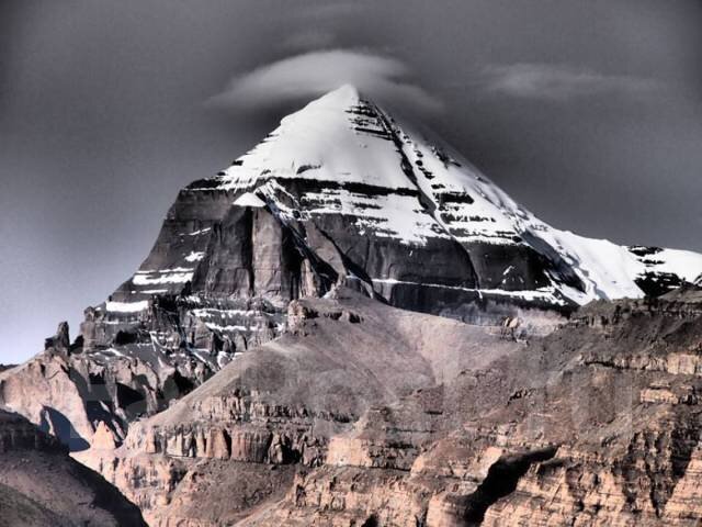 Самое неприступное и загадочное место планеты- Кайлас. Священная гора - гора Кайлас. Так считают многие религии мира и постоянно толпы паломников стремятся в Тибет, чтобы обойти вокруг этой таинственной горы. Центром мира считают гору такие религии как индуизм, буддизм, бон и джайны. Считается, что гора появилась со дна океана 20 000 лет тому назад. Своей формой гора очень напоминают пирамиду, а её грани с поразительной точностью указывают на части света. Но подняться на вершину Священной горы ещё никому не удалось так как гора, каким-то мистическим образом, никого туда не пускает. Много было экспедиций и людей желающих взобраться, но как только они оказывались у подножья, то у всех возникало странное желание и почти паническое - уйти подальше от этого места. Горы поменьше, те что вокруг Кайлас, учённые считают рукотворными. Так же они считают, что маленькие пирамиды, а Кайлас центральная и самая большая, на поверхности которой обнаружен облицовочный материал, схожий по прочности на б
