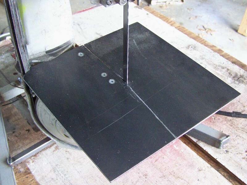 Эта станковая ленточная пила по металлу была сделана из ручной ленточной пилы. Конечно, вариаент не идеален, но, возможно, кому то понравится принцип конструкции. Материалы: Инструменты: Шаг 1: Делаем стол для пилы Если у вас осталась фанера толщиной 0.3 см от предыдущих проектов, то она вполне подойдет. Хотя некоторые используют 0.5 см, вполне достаточно 0.3 см. Разрежьте фанеру так, чтобы получился квадратный кусок со стороной 20 см. Отметьте середину квадрата. С одной стороны распилите квадрат до центра. Сквозь эту щель будет проходить лезвие ленточной пилы. Рассмотрите второе фото. Фанера к основанию пилы крепится с помощью трех шурупов. При помощи малярной ленты отметьте места, куда вы закрутите шурупы. При помощи прямого угла проверьте положение шурупов. Выньте фанеру и поверните ее на 180 градусов. Тогда линия, прорезанная для пилы, будет сзади, а гладкая часть будет впереди, так что стол будет легче использовать. Пробойником сделайте отверстия в фанере, чтобы они подходили к