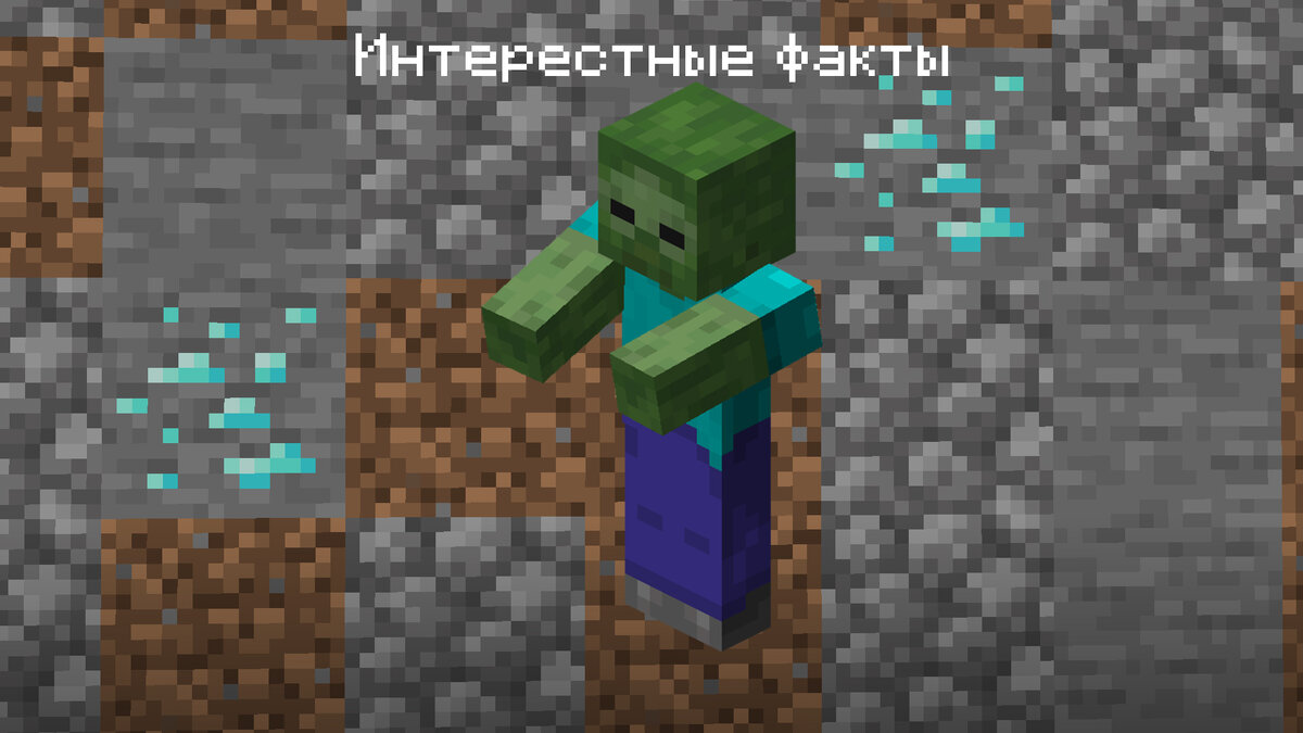Привет дорогой читатель! Я продолжаю свою рубрику с фактами! Сегодня я бы хотел рассказать о Зомби в Minecraft и о их фактах. Приятного чтения :) 1) Зомби второй добавленный моб в Minecraft 2) В первых версиях игры, Зомби передвигался со скоростью Игрока 3) Во время Хэллоуина (31 октября) Зомби может заспавниться с тыквой на голове 4) Чем меньше жизни у Зомби, тем больше его урон 5) Зомби нападает на тех мобов, которые причини ему урон, даже если это было случайно. 6) Самый редкий моб в Java Minecraft — маленький зомби-житель в полном сете алмазной брони и зачарованным мечом, верхом на курице. 7) В "Сложной" сложности игры Зомби могут подобрать любую вещь и броню. 8) Зомби выше Игрока 9) Когда настает рассвет, Зомби пытаются найти тень или воду чтобы выжить, но если они заметят Игрока или Жителя, то они покинут безопасное место и пойдут за целью. 10) Зомби всегда выбирают короткий путь, даже если его сложнее пройти 11) В игре есть Зомби гигант, в отличии от обычного Зомби он н