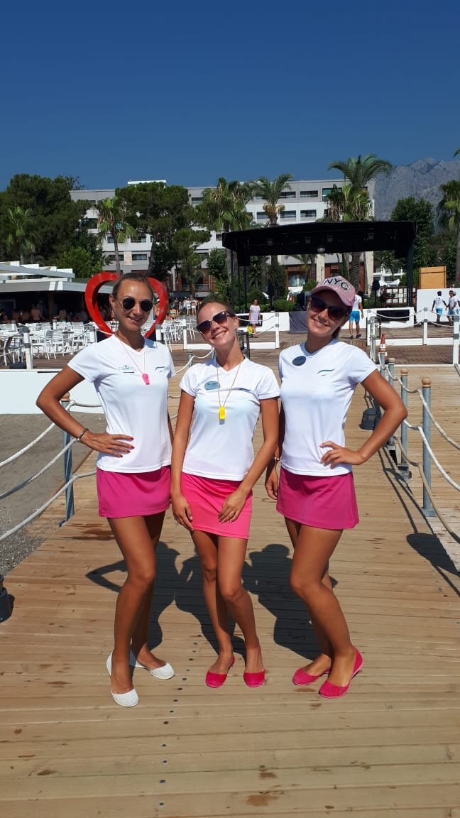 Я работала в двух турецких отелях, принцип везде примерно одинаков: в 10.00 начало работы, есть 2 перерыва (обеденный и перед вечерней программой) и конец работы примерно в 23.30-0.00. Выходной раз в неделю. Мой день начинался в 8.20. Я просыпалась, умывалась и шла на завтрак. Питались аниматоры вместе с гостями, так что в ресторане был огромный выбор блюд. В 9.45 у нас был митинг (собрание) в амфитеатре с нашим шефом, где мы обсуждали итоги прошедшего дня и программу на текущий день. В 10.00 начиналась работа. В первом отеле мы ходили по территории и давали информацию о программе на день, а во втором отеле кричали "Доброе утро!" на 5 языках. В 10.15 я шла на morning gym (утренняя гимнастика). Другие аниматоры шли на волейбол, боччу, стрельбу из винтовки и дартс. В 11.00 сразу после гимнастики, я шла на зумбу. В 11.15 я вела аквагимнастику или водное поло. Иногда были моменты, когда morning gym, aqua gym и water polo делили между мной и другими ребятами. В тяжёлые дни я вела всё подряд