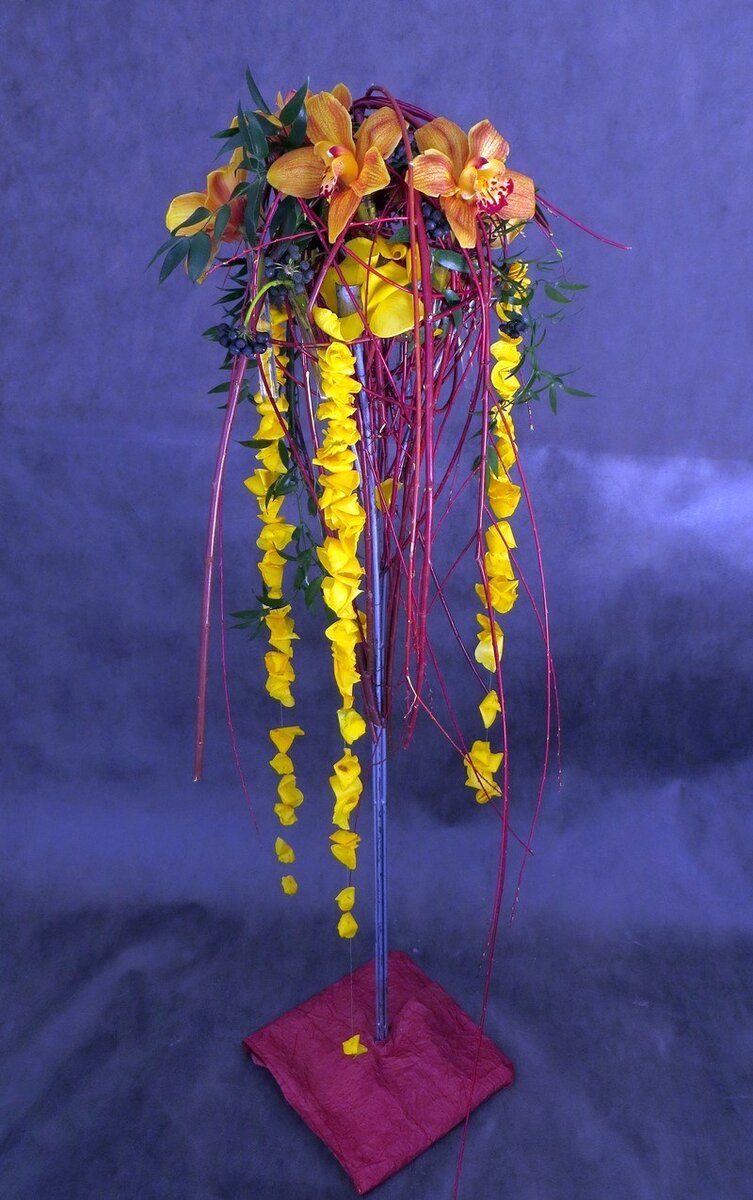 Важный момент: если речь идет не об украшении на определенное мероприятие (юбилей, свадьба, презентация), то нужно подбирать максимально стойкие цветы, способные простоять несколько дней.