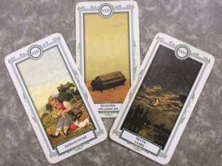 Добрый день! Представляю вашему вниманию расклад на гадальных картах про финансовое состояние дел на сегодняшний день. Каждое утро я выкладываю новый вариант. Подписывайтесь на мой канал и вы каждый день будете видеть свежую выкладку. Если вы попадаете на более ранний расклад, значит именно этот вариант вам сегодня подойдет. Колода карт "Ленорман" сегодня показывает - Гроб, Ребенок и Луна. Сочетание не самое радостное, говорят о том, что какой-то период жизни закончился, возможны проблемы на работе, но что-то новое не стоит торопится начинать, все обречено на провал. Лучше успокоится, возможно попытаться получить новые знания, необходимые для продвижения вперед. Нужно перестать относится ко всему с детской наивностью, необходимо повзрослеть. Возможно, придется начинать все с начала. Если хотите успеха, придется приложить максимум усилий. Смотрите лунный календарь, если Луна сейчас убывающая, значит не стоит ничего нового предпринимать, будут потери. Карты "Таро" сегодня показывают: Ко