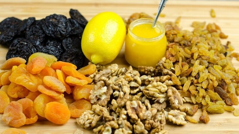 Два рецепта смесей для укрепления иммунитета для взрослых и детей. 2. 200 грамм кураги, 200 грамм чернослива, 200 грамм инжира, 200 грамм грецких орехов, 200 грамм изюма, 200 грамм меда, 1 лимон, 50 мл коньяка. Сухофрукты и лимон с кожурой пропустить через мясорубку, залить смесь медом и коньяком. В банку и в холодильник. Принимать перед едой по 1 ст. ложке.