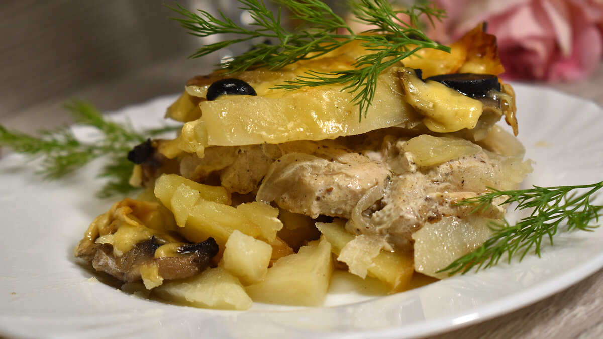 Блюда из картофеля всегда одни из самых вкусных. Готовить их не особо тяжело. Моими любимыми блюдами из картофеля являются картофельные запеканки. Картофельные запеканки безусловно получаются очень вкусными и сытными. Готовить их можно с мясом, колбасой или сосисками. Хочу поделиться с Вами рецептом мега вкусной картофельной запеканки с куриным филе. Такую запеканку с мясом приготовить легко и