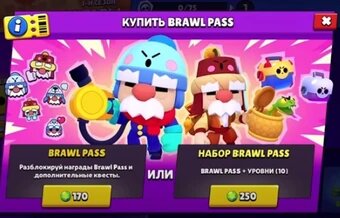 Награды с бесплатного Brawl Pass доступны всем игрокам, а премиум награды доступны только тем, кто купил Brawl Pass за 169 за сезон. Для того, чтобы получать награды нужно копить жетоны. Для получения первой награды нужно накопить 75 жетонов. Далее количество нужных жетонов будет увеличиваться. Максимальное число жетонов на уровень - 650. С каждым следующим уровнем на бесплатной дорожке вы будете получать награду. Например: при переходе на 30 уровень Brawl Pass вы получите мегаящик, а с премиум вы получите ещё и Гэйла. Меню наград Набор Brawl Pass стоит 249 и даёт игрокам не только сам Brawl Pass (Премиум), но ещё и мгновенно открывает 10-й уровень Brawl Pass. При прохождении всех 60 этапов за каждые 500 жетонов будет даваться Большой ящик. Brawl Pass и Набор Brawl Pass Награды Награды, которые можно получить с Brawl Pass: Сезоны Первый сезон Brawl Stars-Анонс первого сезона Это самый первый сезон Brawl Pass, который имеет название "Базар Тары". В этом сезоне можно п
