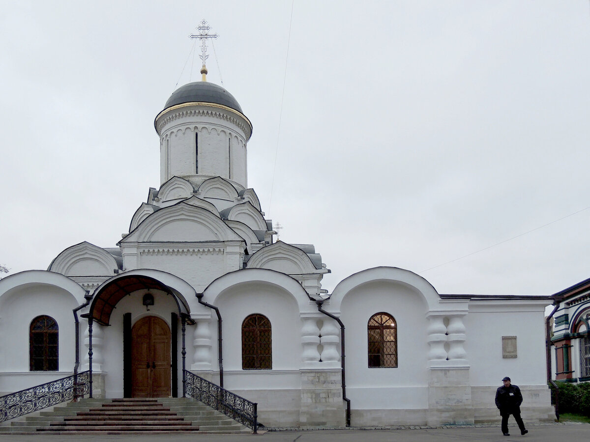 Москва. Богородице-Рождественский монастырь. Собор Рождества Пресвятой Богородицы. Архитектурный стиль:Раннемосковский Год постройки:Между 1547 и 1550. (1501-1505 ??). Адрес:Россия, город Москва, улица Рождественка, дом 20, строение 14. Проезд:Станция метро "Трубная" Построен в 1501–1505 годах в традиционном московском стиле ХVI века на месте прежнего, о существовании которого свидетельствуют сохранившиеся в восточной части фундамента остатки более древней белокаменной кладки. Здание собора сильно пострадало от пожара 1547 года, но к 1550 году было полностью восстановлено. Тогда же в южной апсиде храма был устроен придел святителя Николая Чудотворца, для чего здесь была сохранена часть кирпичной алтарной преграды, которая к тому времени была уже почти полностью разобрана. Заметно сходство собора со Спасским собором Андроникова монастыря в Москве. С сайта монастыря Построен в 1501–1505 годах в традиционном московском стиле ХVI века на месте прежнего, о существовании которо
