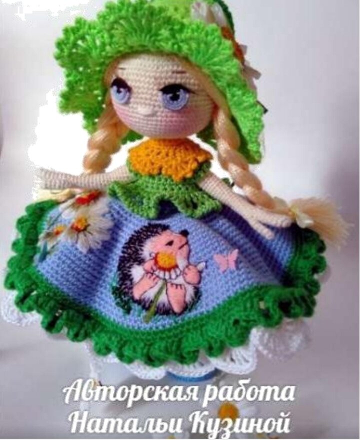 Нить- любая на ваше усмотрение под крючок,но лучше взять нить по толщине как вязали куклу.