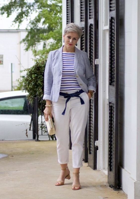 Не надо носить старушечьи кожаные туфли из перфорированной кожи, сабо на танкетке или сандалии "прощай молодость". Как говорится, ещё успеется ближе к 120 годам. В стильный летний гардероб за 60+ отлично впишутся, подходящие под все, белые кроссовки.