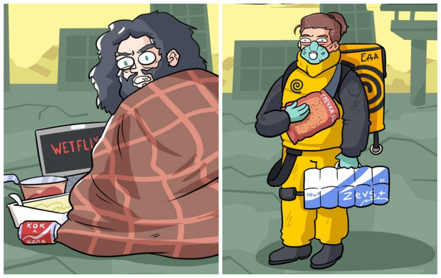 Привет друзья! С вами канал Cherchill! Все люди на Земле переживают сейчас не лучший период времени, так как во многих странах до сих пор действует режим самоизоляции из-за пандемии страшного и коварного КОРОНАВИРУСА. И сегодня я хотел бы вам показать комиксы одного человека с безграничной фантазией, который смог показать в своих комиксах, с иронией и юмором, людей переживших эпидемию-2020. А перед началом статьи не забудь подписаться на канал и поставить лайк! Подписался? Тогда мы начинаем! Здравствуй, дорогой предок из 2020 года! Пишут тебе твои далекие потомки с прекрасной планеты будущего. Во-первых, спасибо за гречку, туалетную бумагу и поправки в Конституцию, до сих пор пользуемся ими всем бункером, все никак не заканчиваются. Во-вторых, если ты читаешь этот текст, значит, ты: а) пережил коронавирус б) относишься к одному из пяти типов по классификации российского художника Reed Ameline. Reed Ameline - русский иллюстратор живущий в столице России, который работает в соц.сети