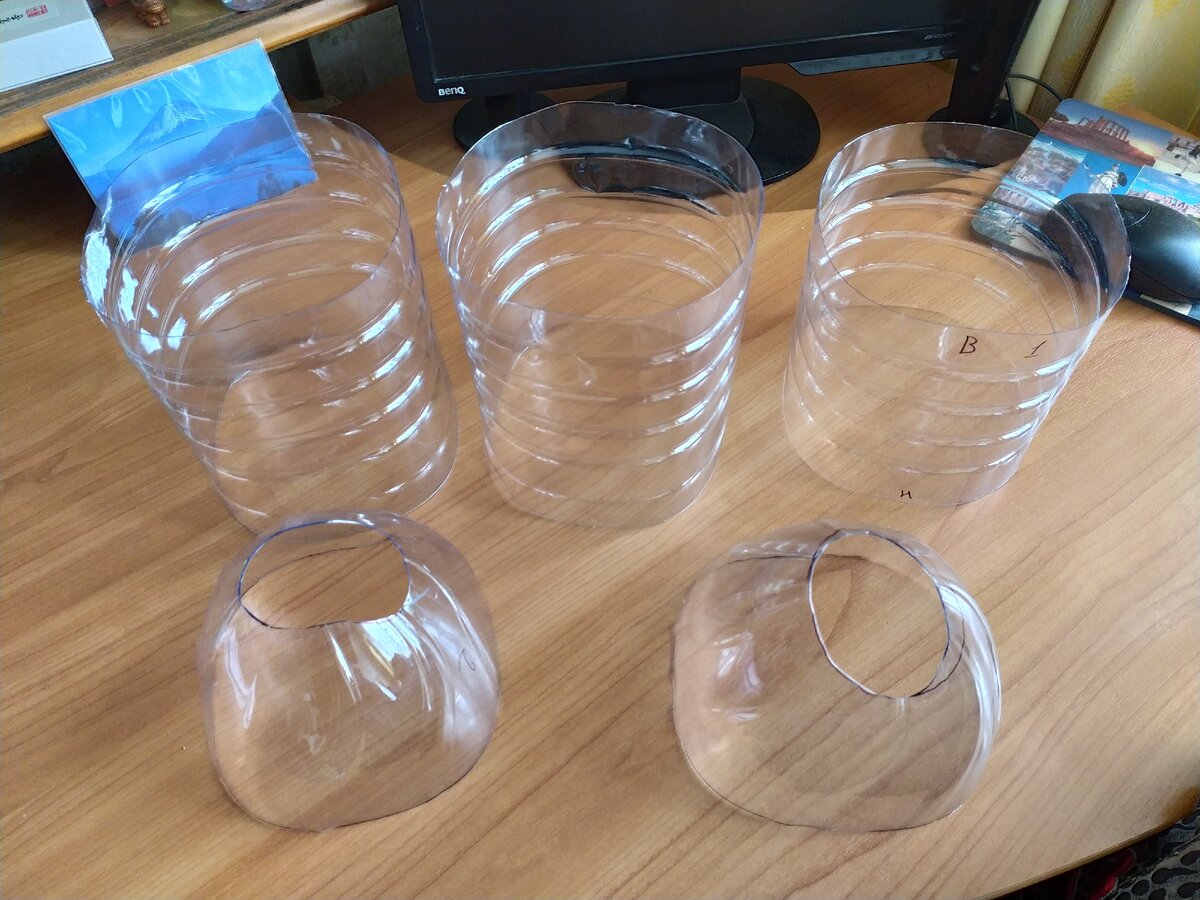 Привет друзья! Вот и подоспела вторая раколовка. Пока я мечтаю попасть на речку, продолжаю делать хлам из хлама. Вот я и сделал очередную раколовку. Как такие делать и как их использовать можно посмотреть на ютубе. Начнем. Для изготовления нам понадобятся пустые канистры от воды. У меня ушло три пятилитровых бутылки. От бутылок мы отрезаем конус к горлышку, дно и потом от конуса отрезаем резьбовую часть. Получаем вот такие детальки. Далее нам надо цилиндры соединить в трубу. Я лично проплавил отверстия и соединил все стяжками. Когда был готов цилиндр, я начал приделывать наши конусные входы. С одного торца конус приделан на шесть хомутиков. А с противоположного конца стяжки выполняют роль петли. Что бы можно было легко открывать вход для выгрузки богатого улова. А что бы наша "дверь" сама не открывалась, я буду через отверстия подвязывать ее проволокой. Ну и не стоит забывать про веревку, для извлечения нашей снасти из воды. Для ее фиксации так же использовал стяжки и палочки